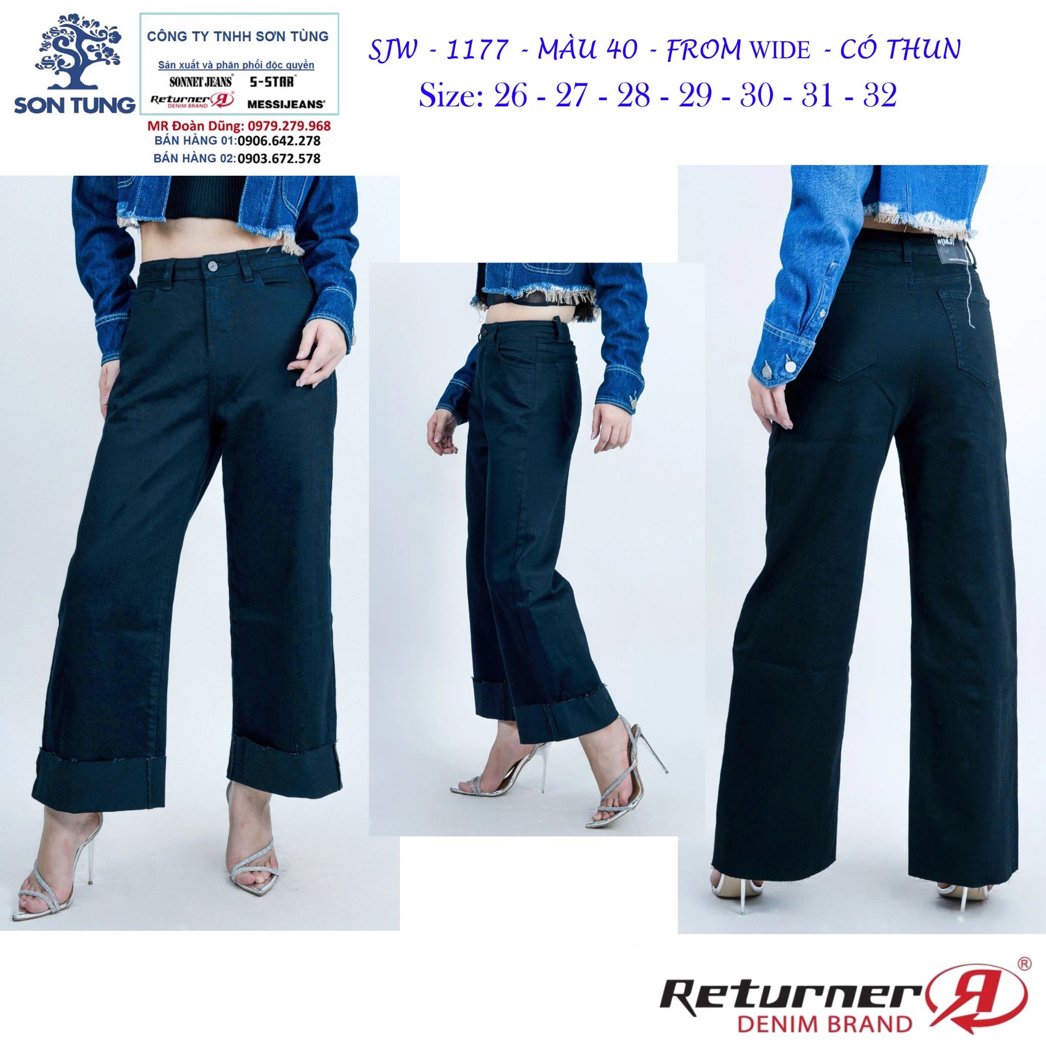 - Đặc điểm: Quần nữ dài jeans lật lai